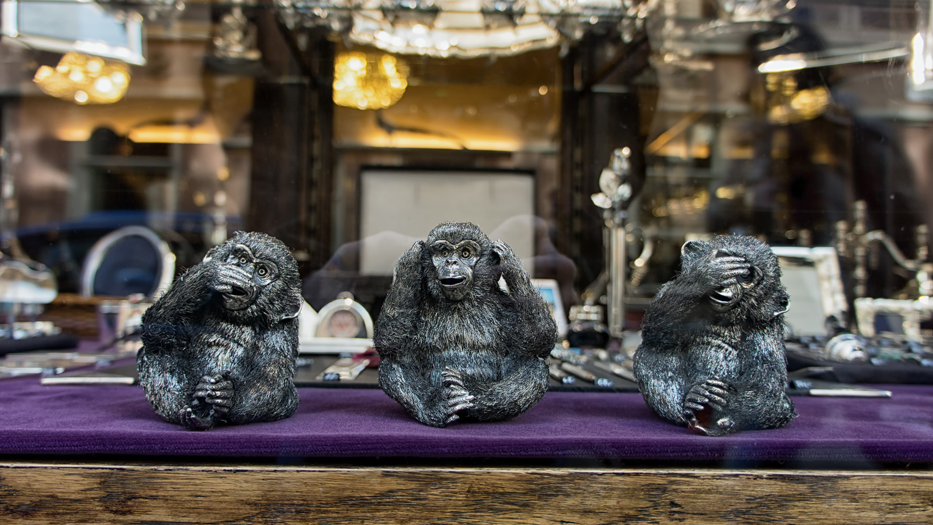 The three wise monkeys are a nice pictorial maxim. 見ざる, 聞かざる, 言わざる which literally means “don’t see, don’t hear, don’t speak”. It got a negative connotation in the western world.